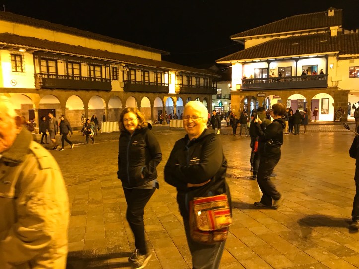 As we rounded the corner into the plaza, we all gasped audibly. The Plaza de Armes in Cusco is simply beautiful. No words can really describe it and there is no photo we can take that does it justice. It is one of those places you just have to be to appreciate the beauty of it; the street lights, the fountain, the Inka Statue, the architecture of the various churches, the arches, the house lights up the hills behind it, and of course the little Quechuan people in traditional dress. All of it contributes to Cusco’s beauty.