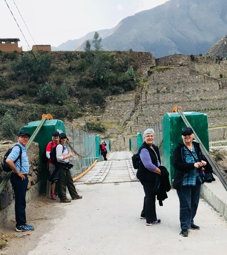 Staying at Ollantaytambo has given pilgrims much needed rest and recovery. We had a slow hike up the mountain towards the quarry. This is us at the Inka Bridge.